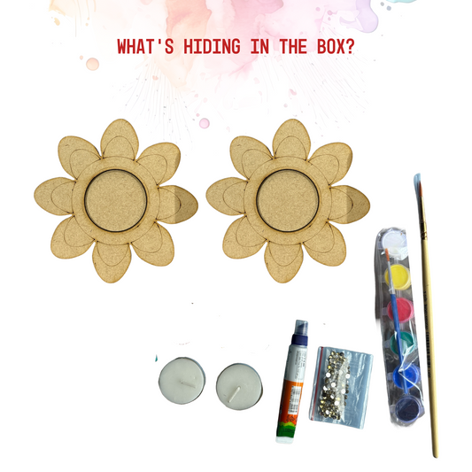 Floral Tea Light and Leaf Rangoli Design DIY Kit I SPLASH DIY Kit