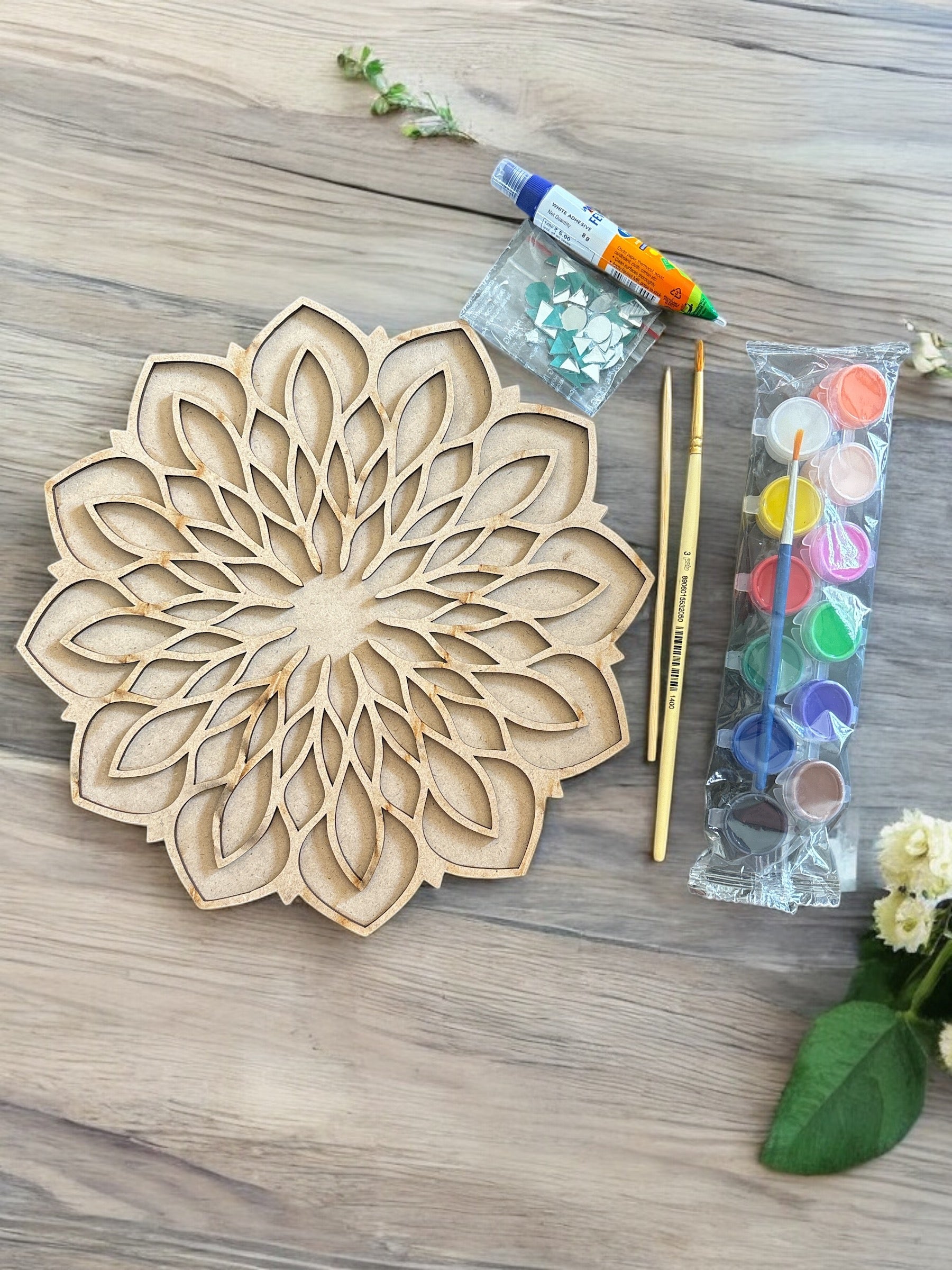 Leaf and Flower Double Layerd Rangoli Design - 9inch DIY Kit I SPLASH DIY Kit