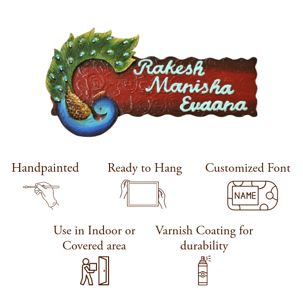 This Dancing Peacock Nameplate not only beautifies your entrance but also conveys heartfelt sentiments, making it a delightful addition to any home.