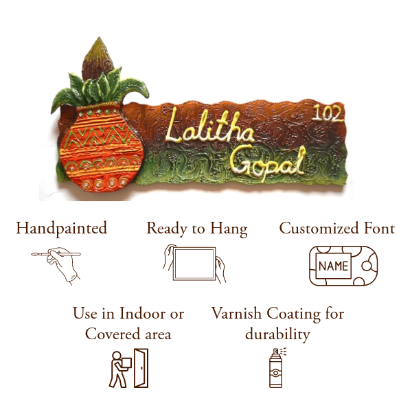 - Customization: Personalize your Kalash Nameplate with family names, house numbers, or special dates for a unique touch that reflects your identity.