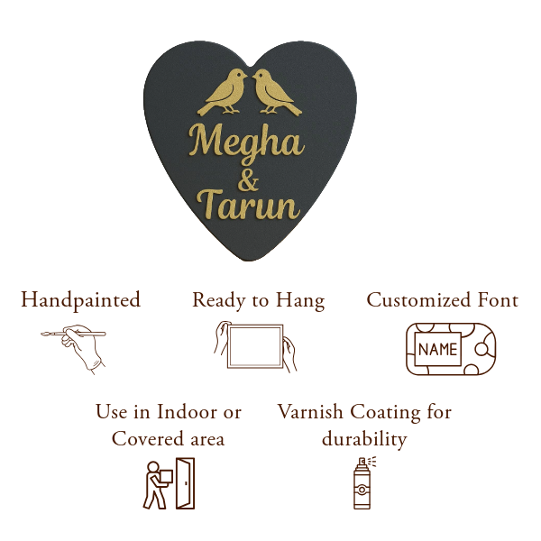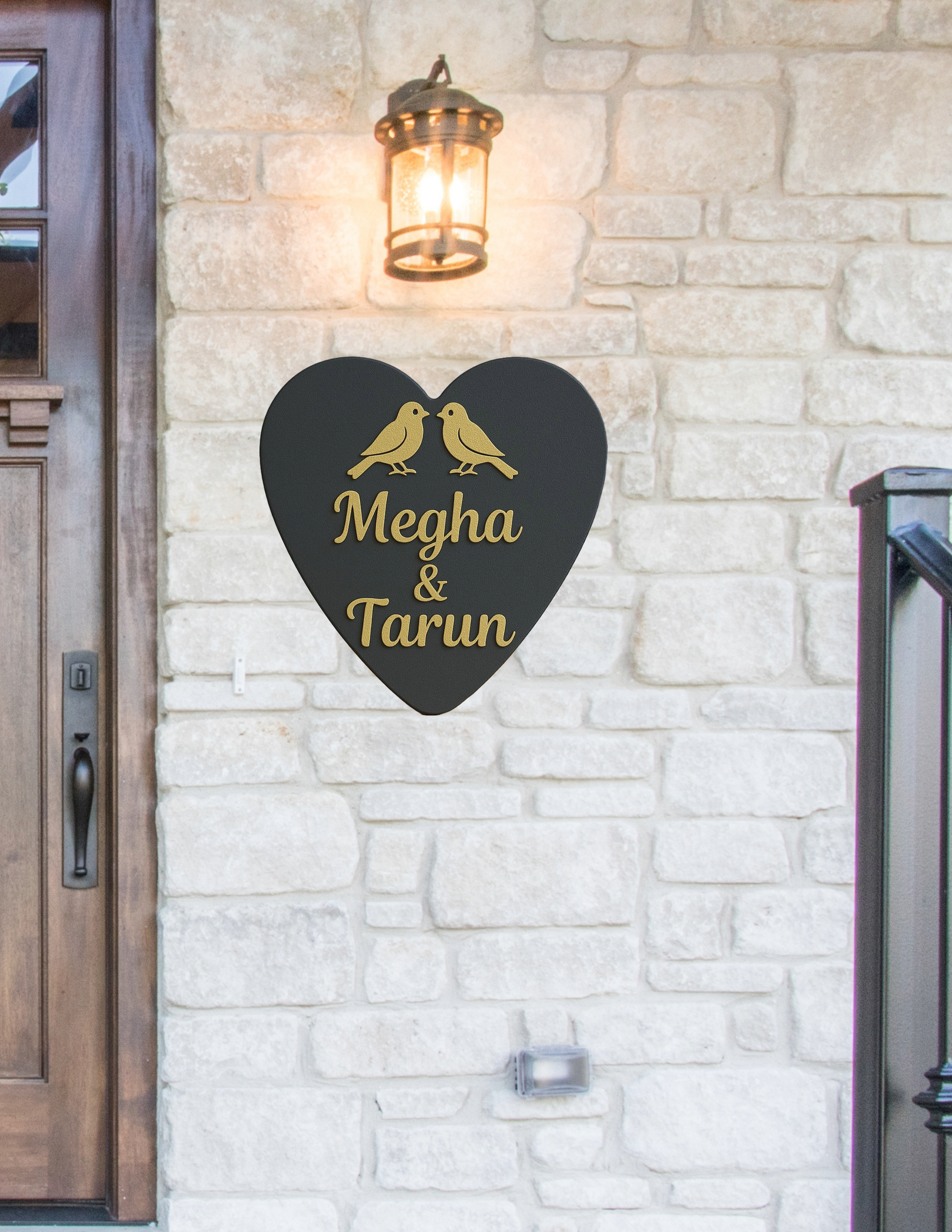 ✔ Charming Heart Design with Birds: Featuring a sweet pair of birds perched on a heart, this couple nameplate radiates affection and harmony—perfect for couples and families alike. 💞🐥
