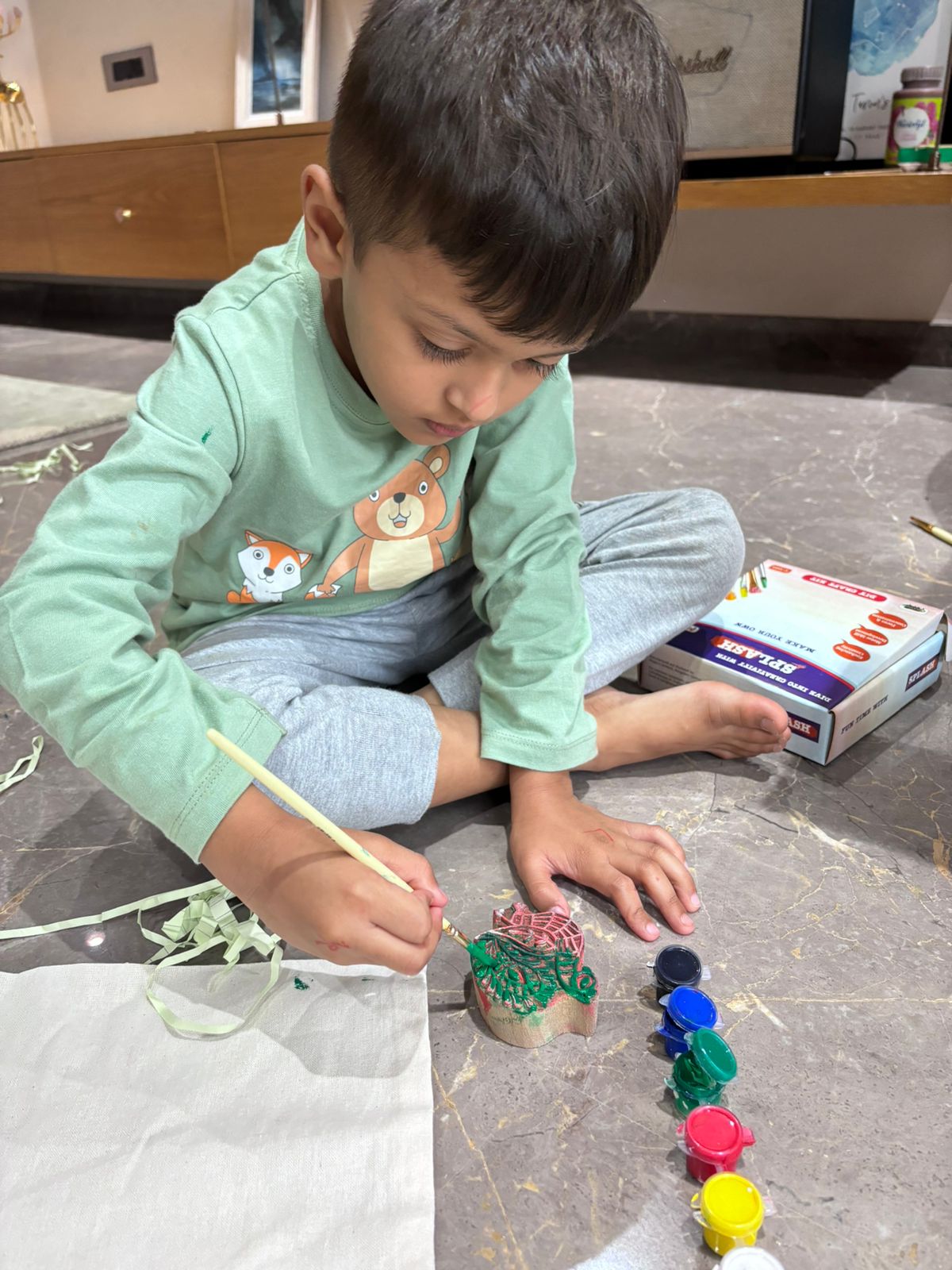 - Fun and Functional: Children can make something tangible and useful—a beautifully hand-printed cotton bag.