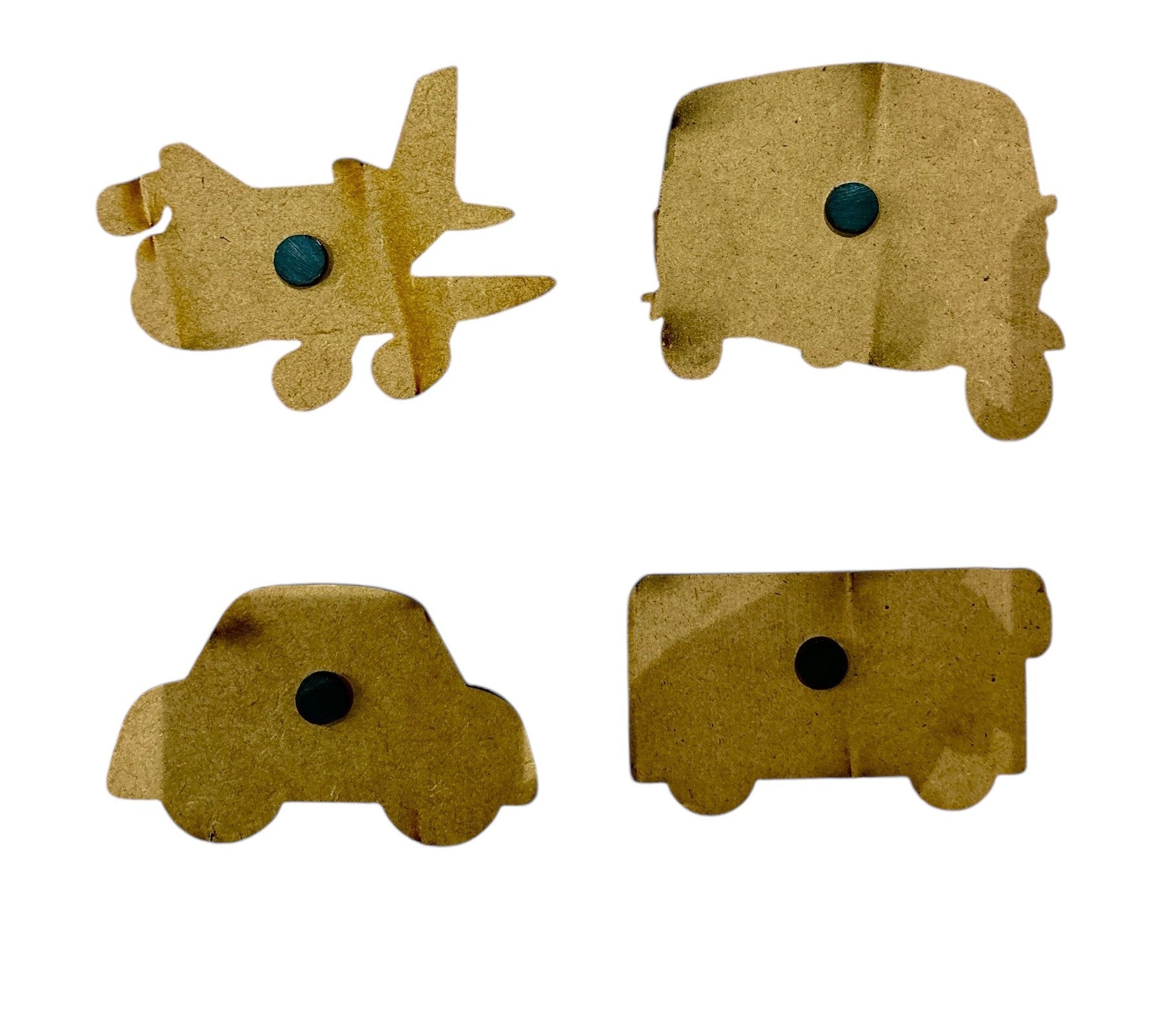 - 4 Pre-Cut Transport Magnets: Includes a car, airplane, bus and auto rickshaw, ready to be painted and decorated.