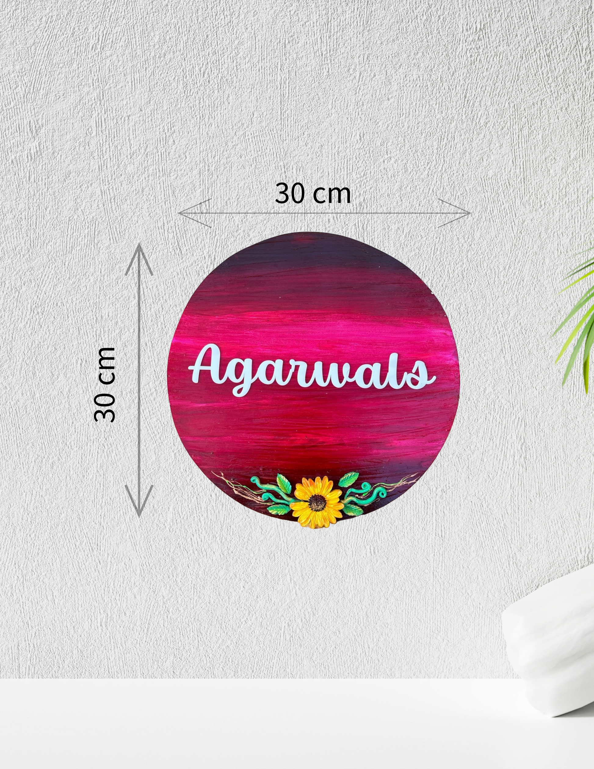 Introducing the Sunflower Blossom Nameplate, a delightful piece that brings warmth and radiance to any space. Crafted from premium MDF wood, this stunning nameplate boasts a robust and elegant finish, making it a perfect addition to your home decor. With a generous diameter of 30 cm, the vibrant sunflower design symbolizes happiness, positivity, and new beginnings, making it not just a decorative item but a heartfelt expression of joy.